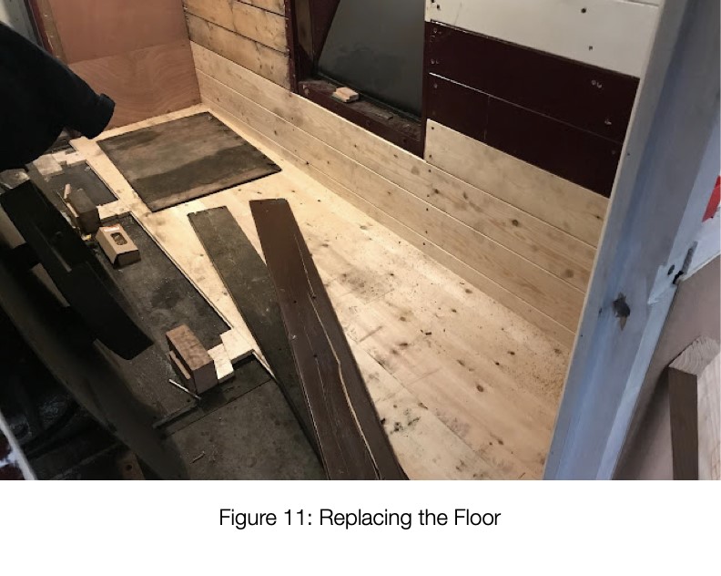 We also took this opportunity to replace the floor of the van, which had also rotted in several places, and to replace some of the planking to the inside of the van, see Figure 11.