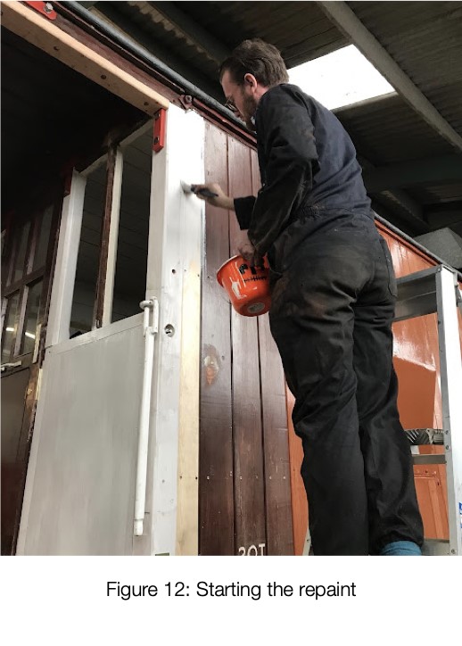 With the wood work completed, the van was off to the paint shop for a complete repaint. Figure 12 shows some of the extensive work required.