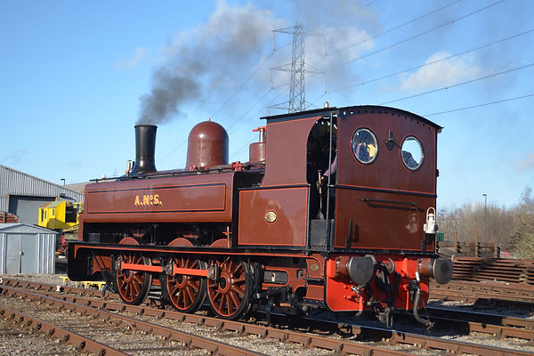 A.No.5 was built in 1883 by Kitson & Company of Leeds with improvements such as larger cylinders and wheels, a reduced wheelbase and pannier style water tanks (although it is in fact a side tank), which was believed to improve stability when running at speed.