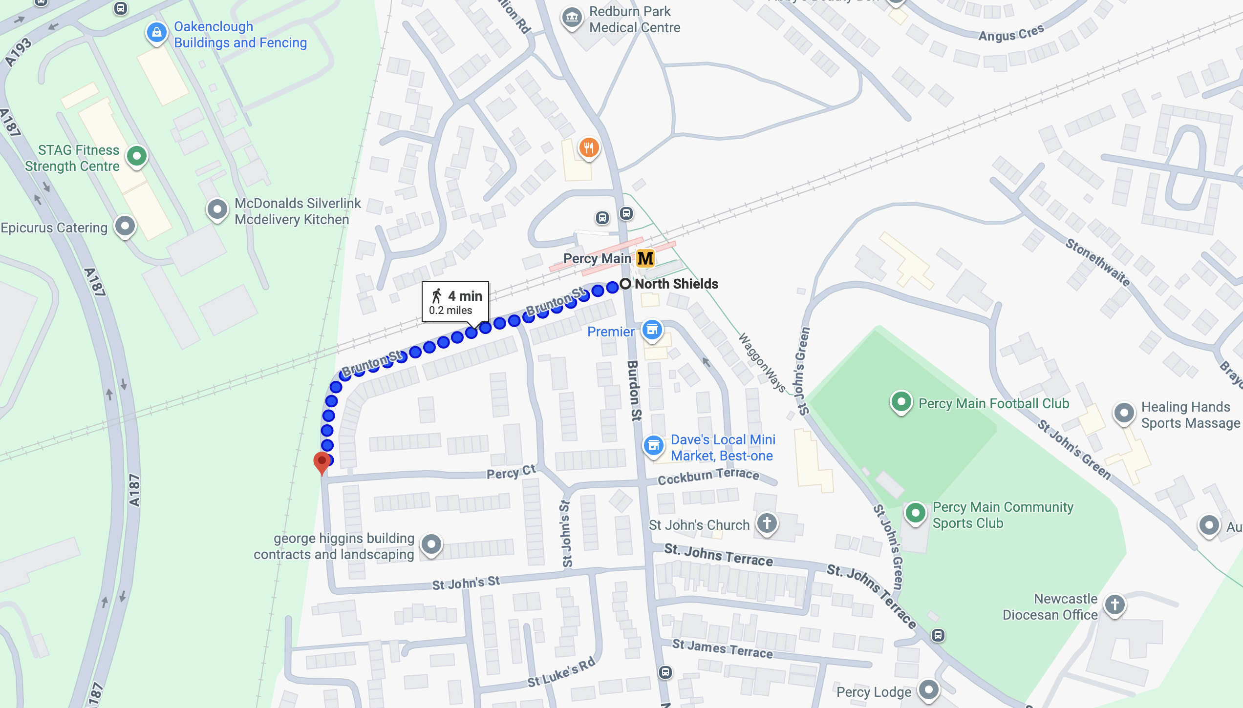 Our Percy Main terminus is roughly a 5-10 minute walk from Percy Main Metro station: